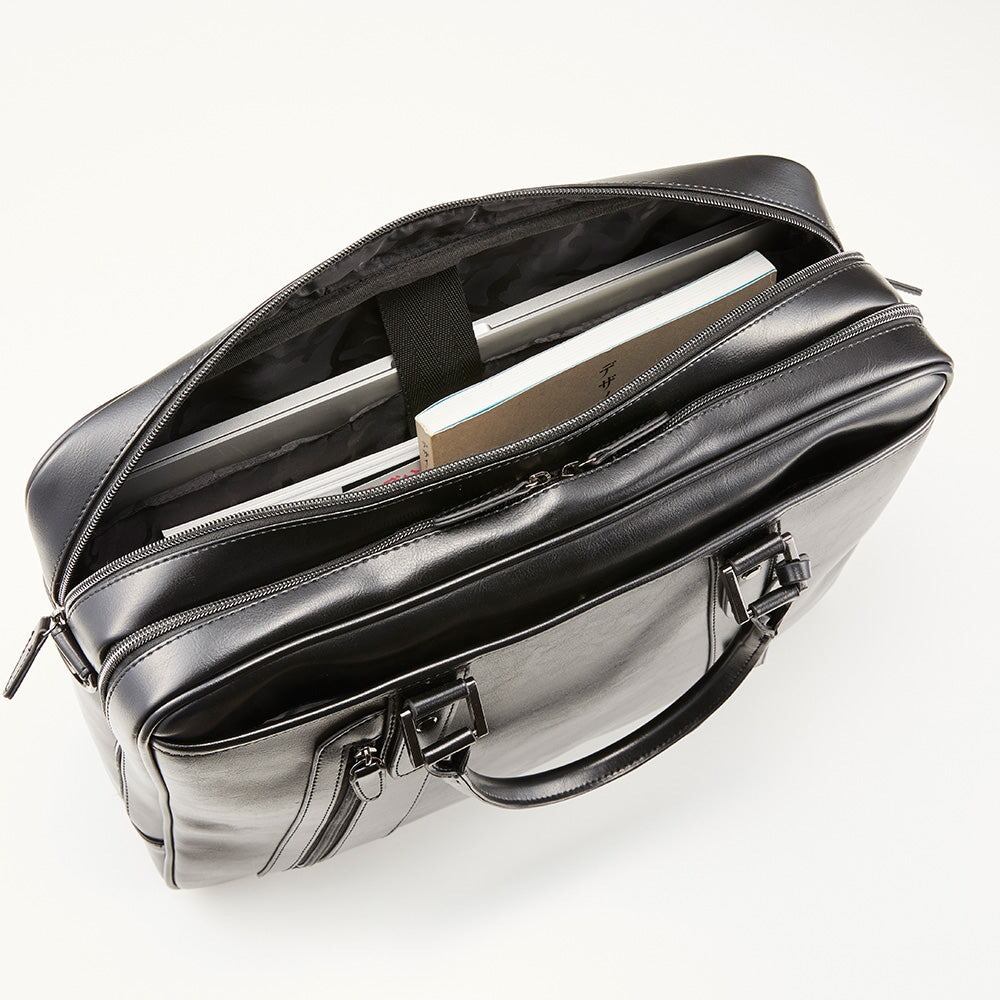 キャリーケースの持ち手に通して固定できるため、荷物が一つにまとめられます。両手を開ける事ができるのでメモを取ったり、名刺交換時に非常に便利。