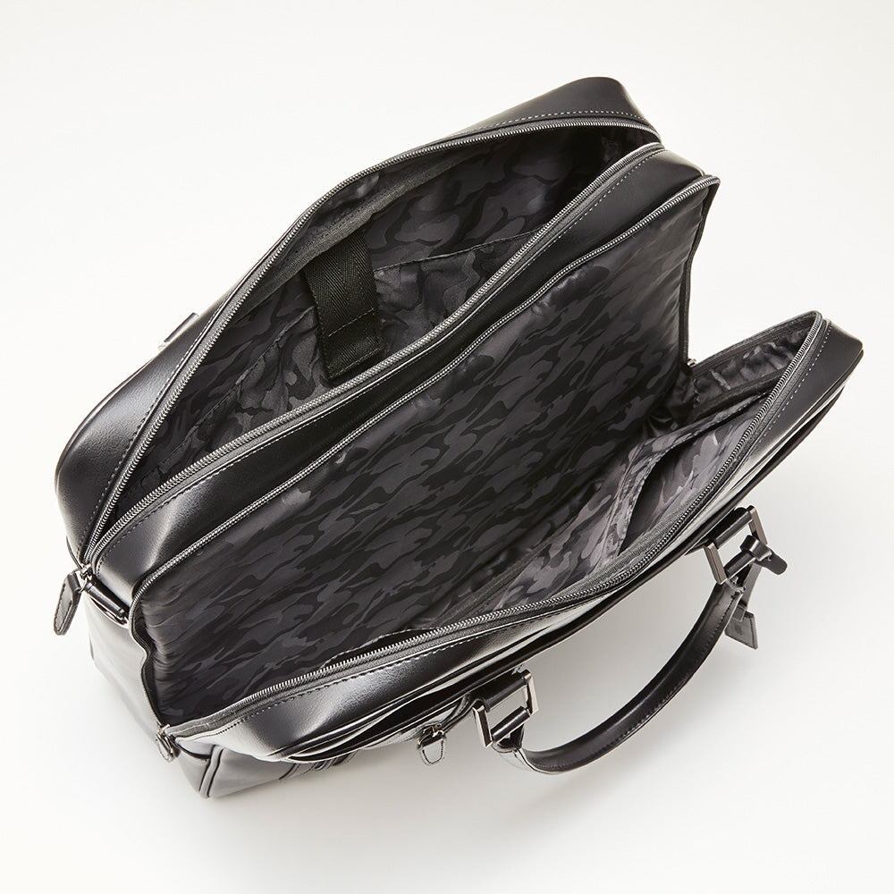 本革のような質感のPVCレザーを使用。PVCレザーは耐久性・耐水性があり汚れにくく、色落ちに強い素材。街で見るハイブランドのバッグや財布に多く利用されています。本革と違い、PVCレザーは革製品のような手のかかるお手入れは不要です。汚れてしまってもサッと拭くだけでメンテナンスも簡単。